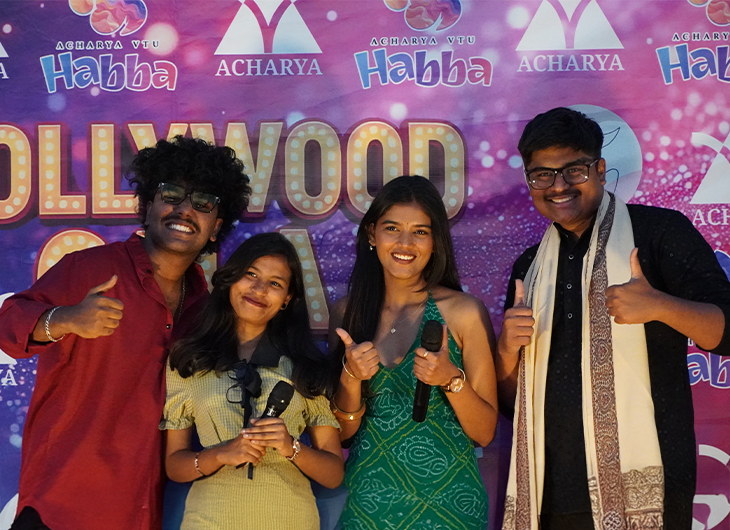 Acharya Habba, our annual techno-cultural fest, is a three-day extravaganza that offers a vibrant platform for talent showcases, music, and cultural collaborations, enhancing students' college life. The festival, launched in 2005, has become one of Bangalore's biggest college events, hosting over 50,000 guests in 2025.