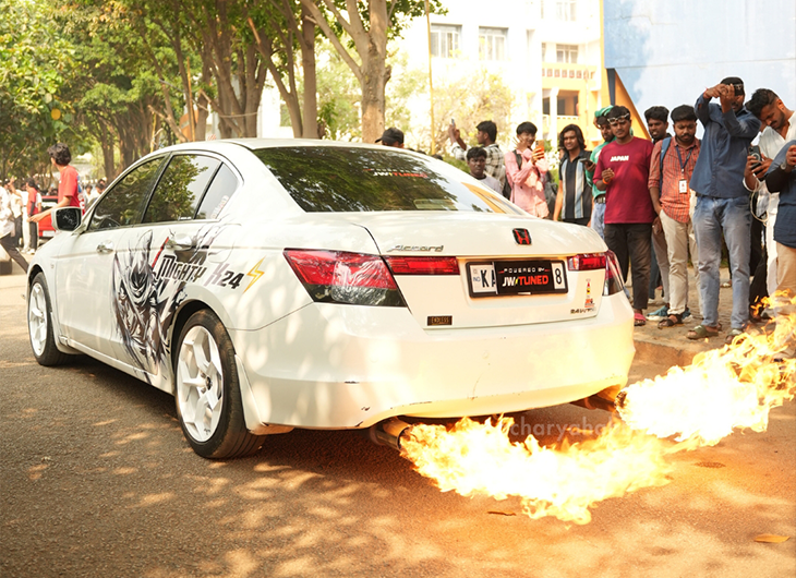 Acharya Habba 2025, the campus’ annual techno-cultural festival, began with vibrant energy featuring a thrilling auto show, bike stunts, and a captivating fire dance performance. The night concluded with electrifying performances by Shalmali and the Vortex Band, creating an unforgettable celebration of music, culture, and campus spirit.